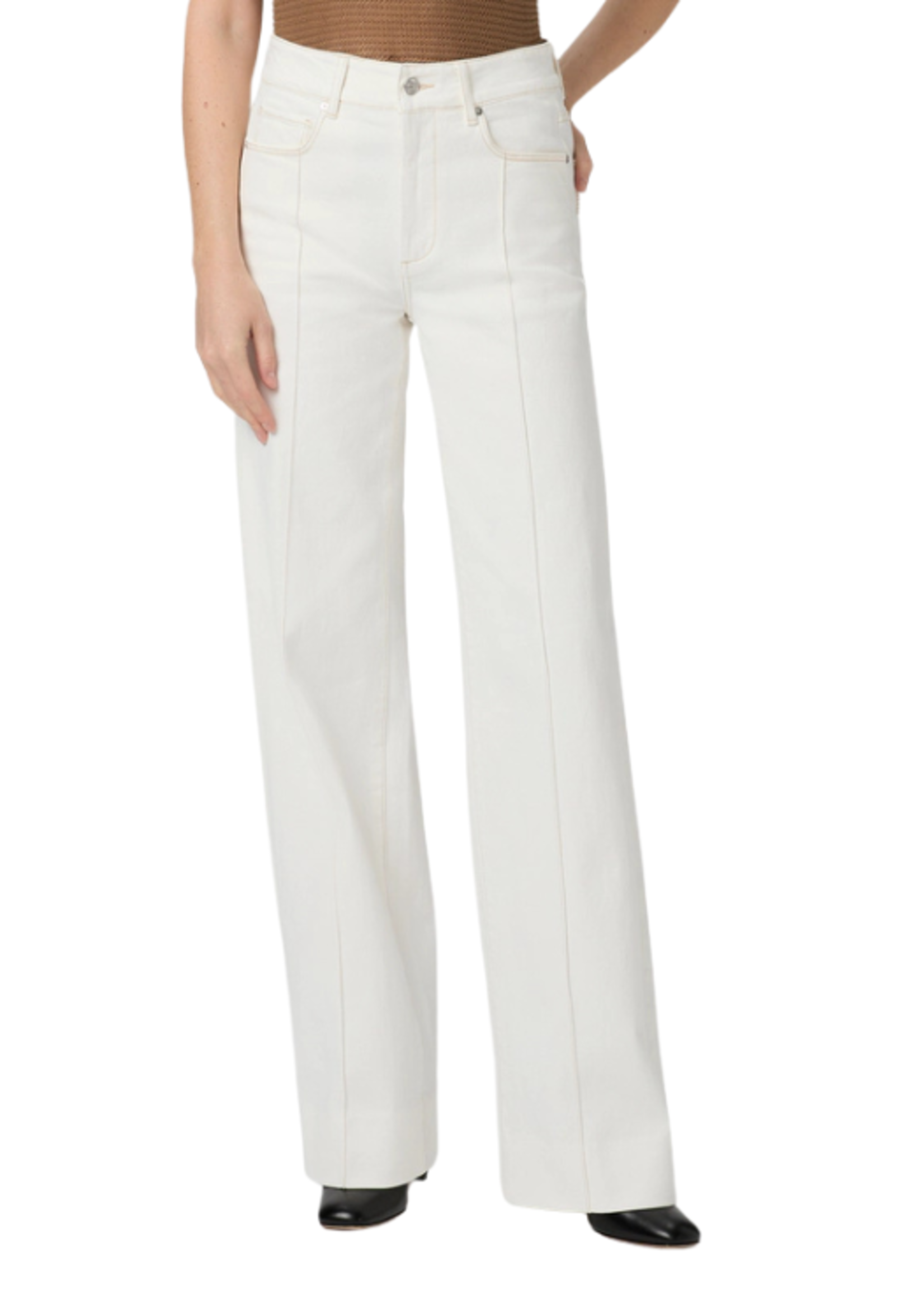 Sasha is a high rise wide leg designed with a fitted top block and a slightly relaxed fit. This pair is cut from ecru denim with pintucks and a blind stitch hem in the perfect weight that provides coverage with a bit of stretch for the most comfortable fi
