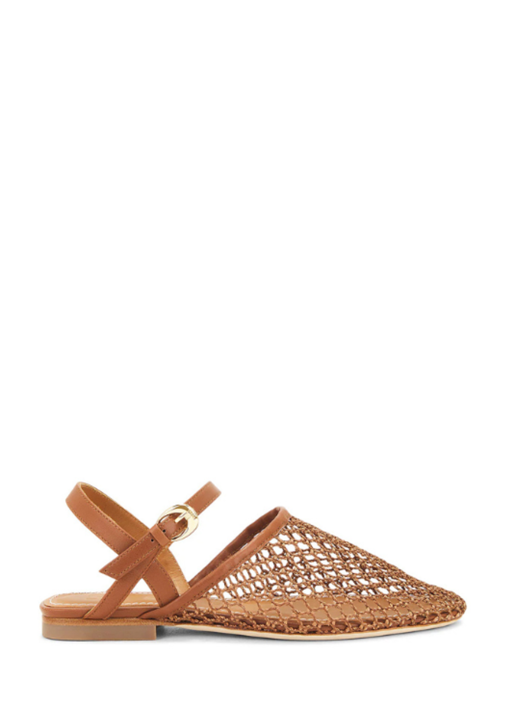 STAUDs take on a fisherman's sandal, the Rete features a cotton mesh upper and leather ankle strap with buckle closure. This style offers added comfort with a leather sole and rubber heel.